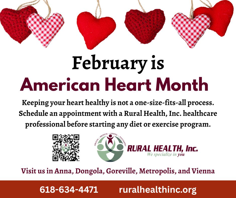 To learn more about American Heart Month, visit heart.org/en/american-heart-month. To schedule your heart-healthy appointment through Rural Health, Inc., call 618-833-4471 or visit ruralhealthinc.org for a clinic near you.