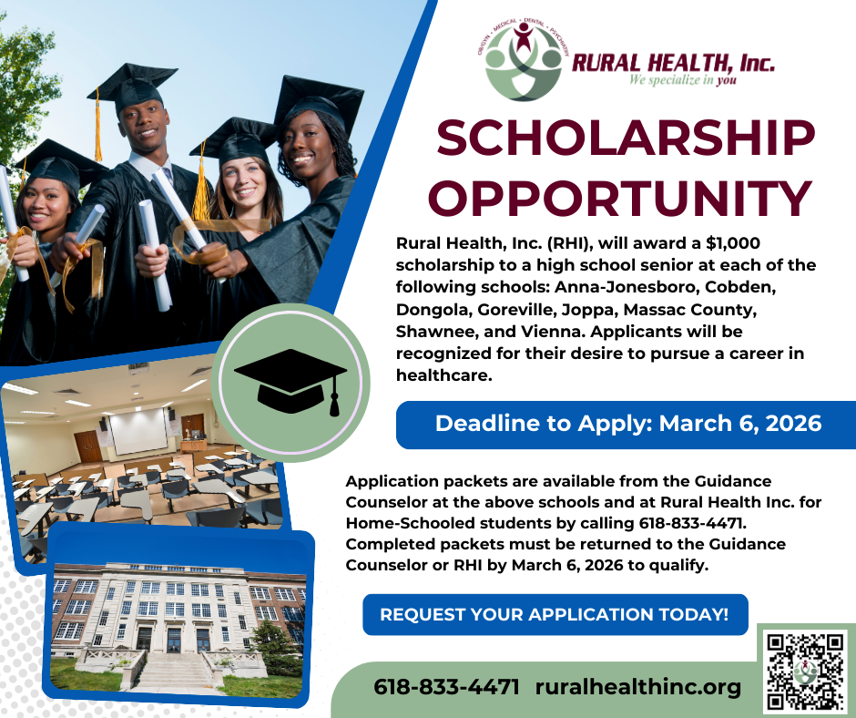 Rural Health, Inc. (RHI), a healthcare leader in the service area of Johnson, Massac, and Union counties, is funding and administering eight healthcare scholarship opportunities to high school students that qualify.